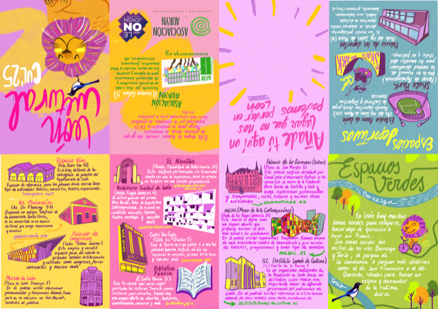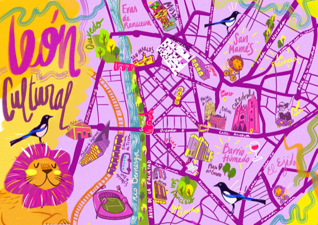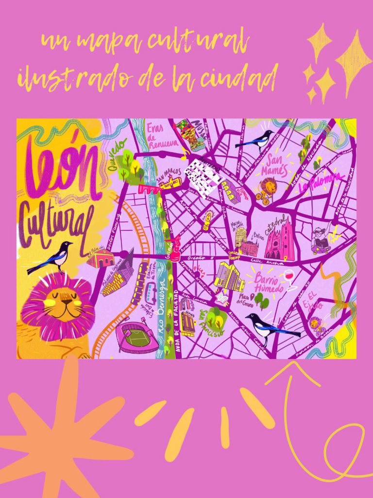Cuando conocimos el programa CUL’25 para jóvenes artistas de la Concejalía de Juventud de León, pensamos que era una buena oportunidad para unir dos cosas que nos encantan: el arte y conocer nuestra ciudad desde otra mirada. Por eso nos planteamos crear un mapa cultural ilustrado hecho por jóvenes y pensado para jóvenes.