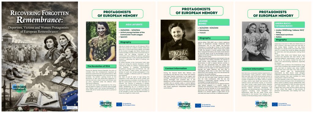 En este contexto, el proyecto REFORE NETWORK ha impulsado acciones orientadas a preservar la memoria de las víctimas de los totalitarismos europeos, con especial atención a aquellas historias que han quedado relegadas al olvido, tanto de personas deportadas a campos de concentración nazis como de mujeres cuya contribución histórica ha sido invisibilizada.